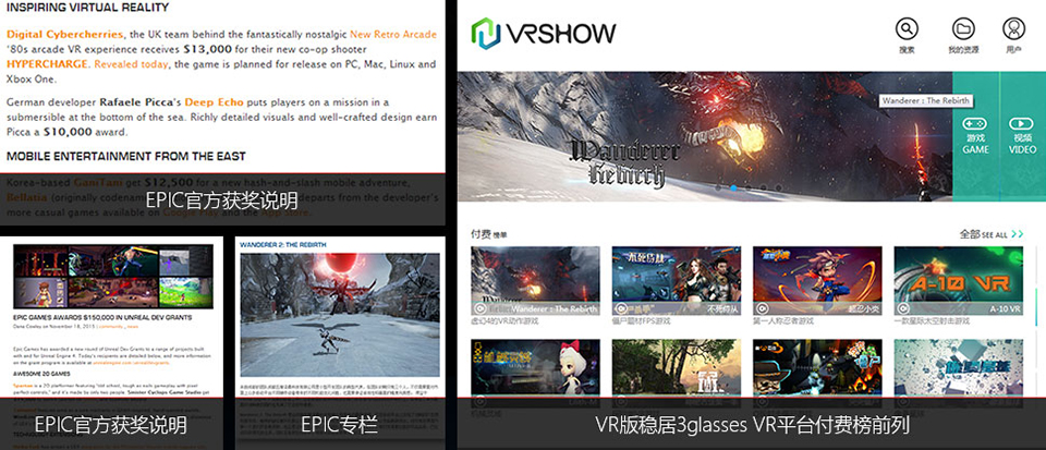 作为最早一批在移动平台上使用虚幻引擎开发的中国使用者,公司在2015年通过参加虚幻引擎研发商EPIC举办的全球虚幻引擎开发者资助计划,成为中国大陆地区首家获得虚幻开发者资助计划资助的公司,同时公司也在做关于VR展示应用,在不久的将来这些产品将会陆续与大家见面。 点击查看